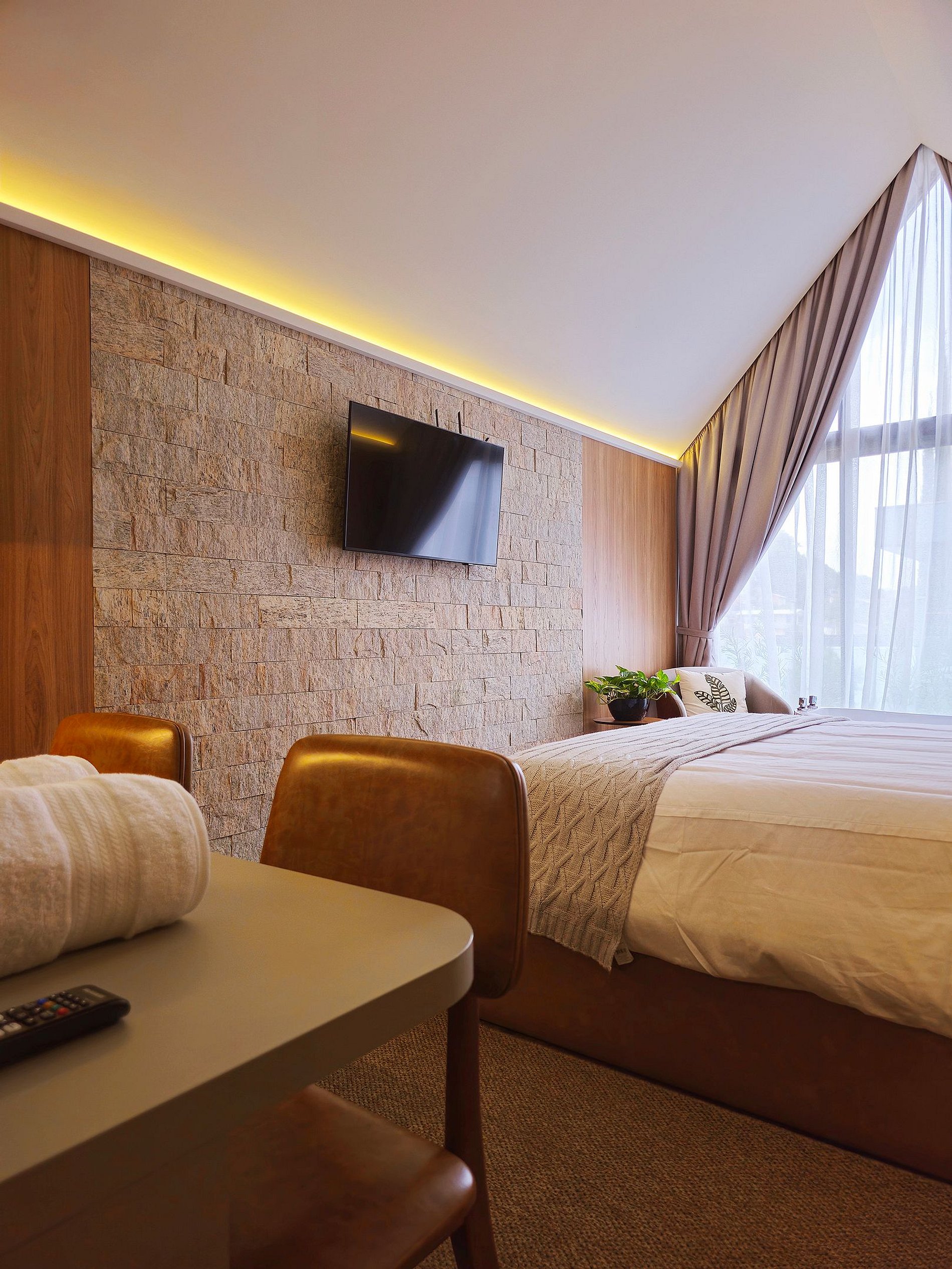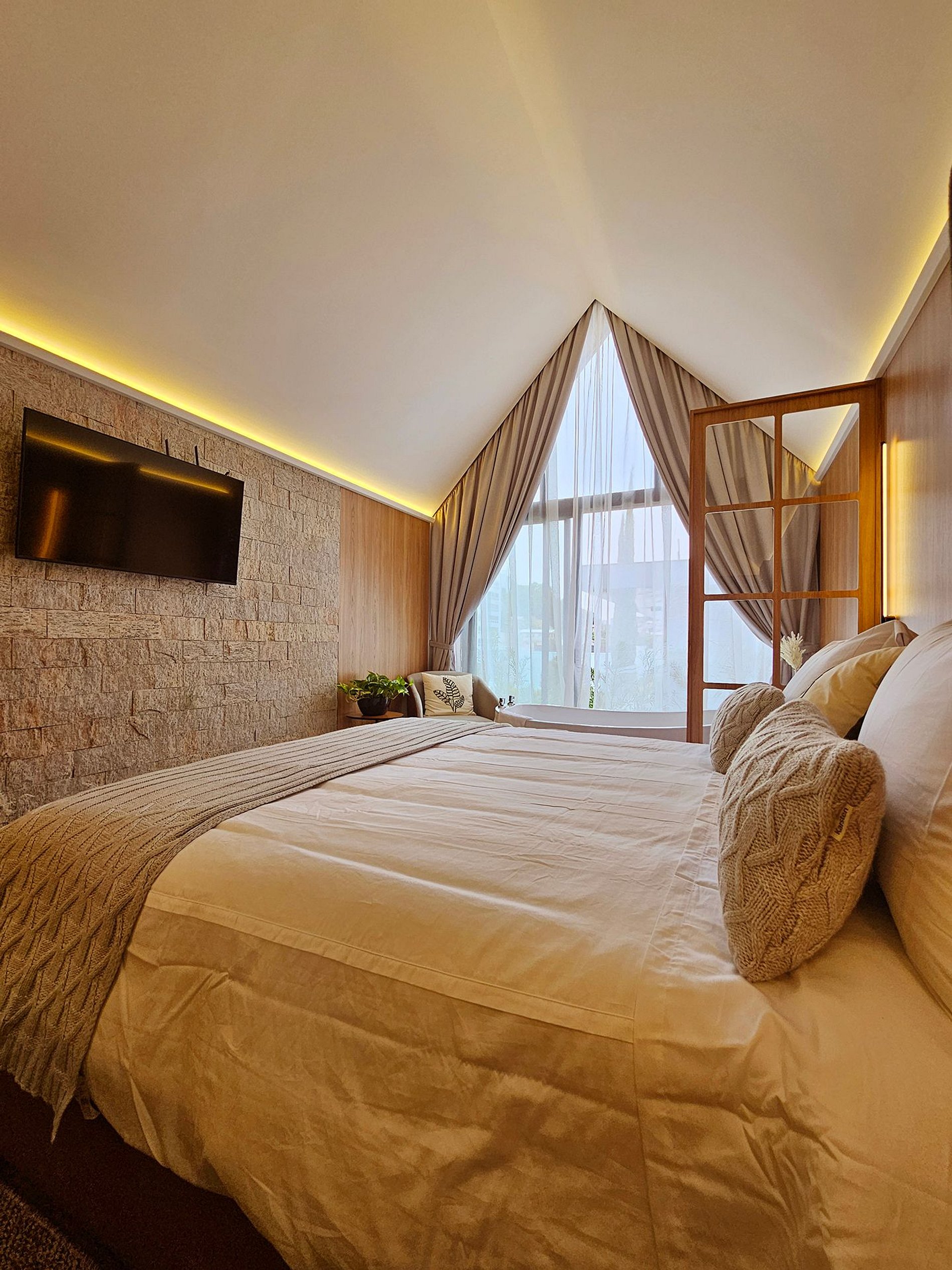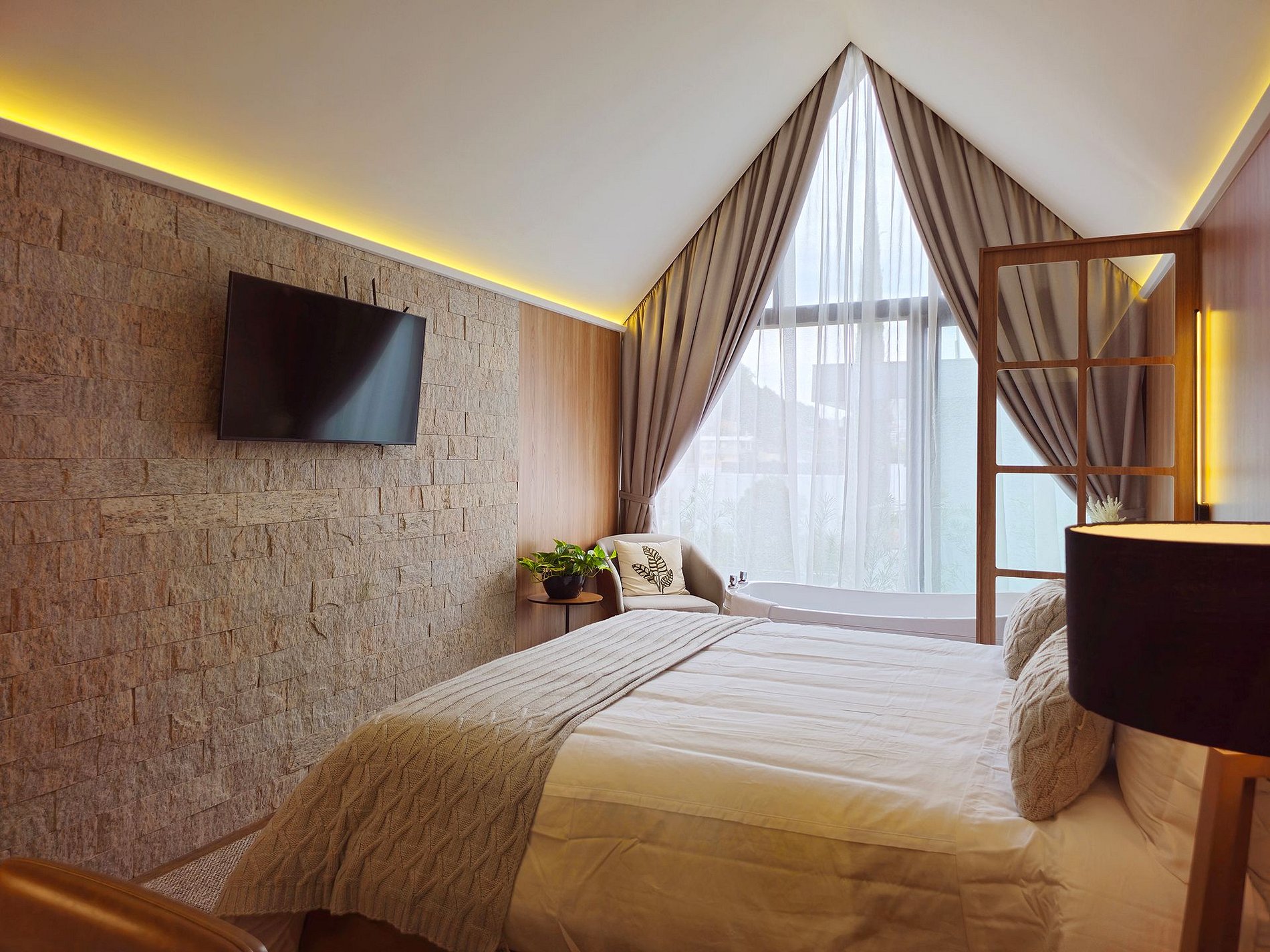 Localizada, a apenas 1km do centro, a cabana Malbec tem um visual interno que mescla o contemporâneo com a rusticidade, o revestimento em pedra na parede transmite um toque de casa antiga da vovó e os painéis de madeira, aquecem o ambiente num visual mais intimista. Na banheira de imersão, a água morna acalme sua mente e tire a tensão do seu corpo, transportando-o para um estado de total relaxamento.