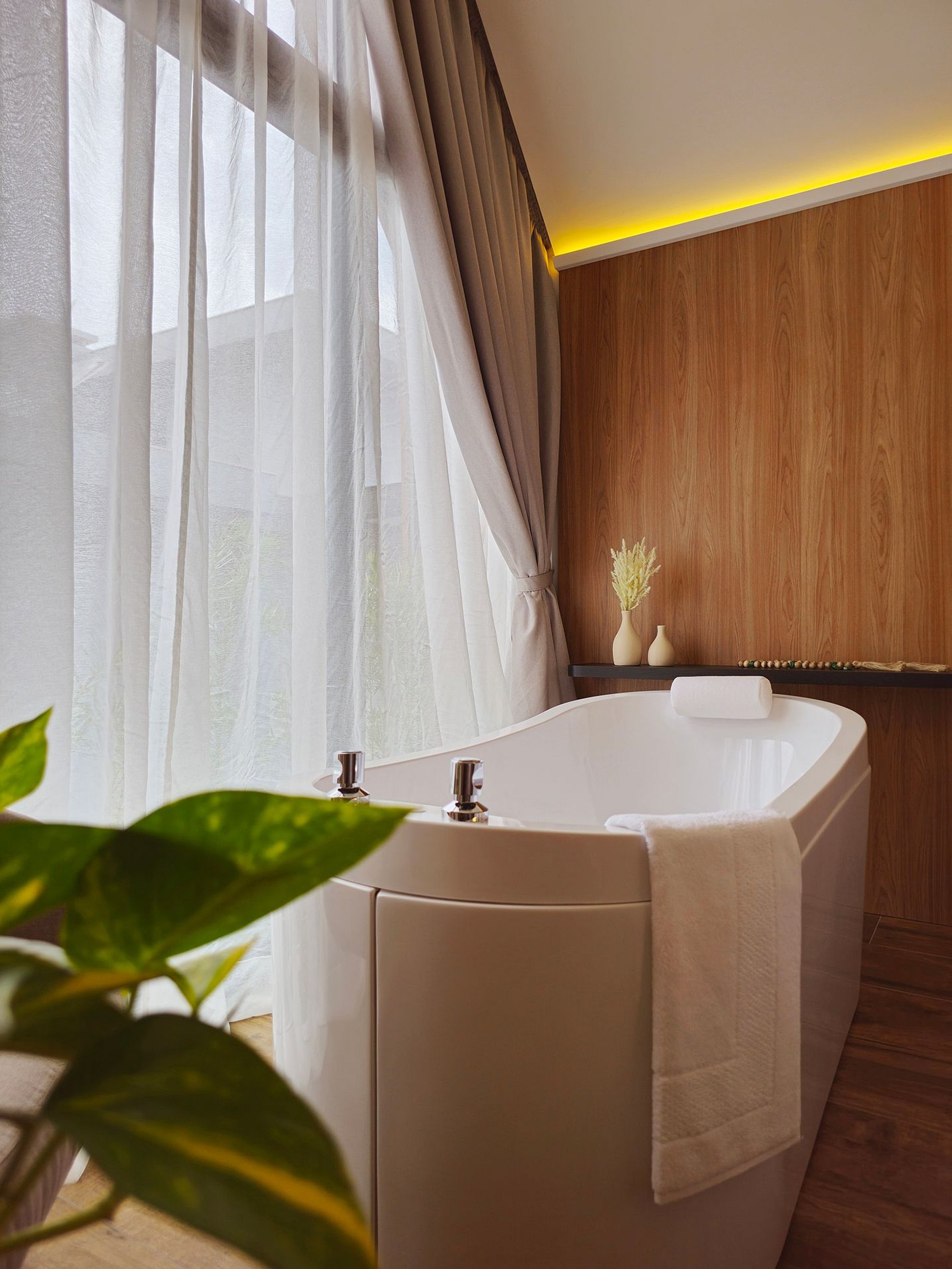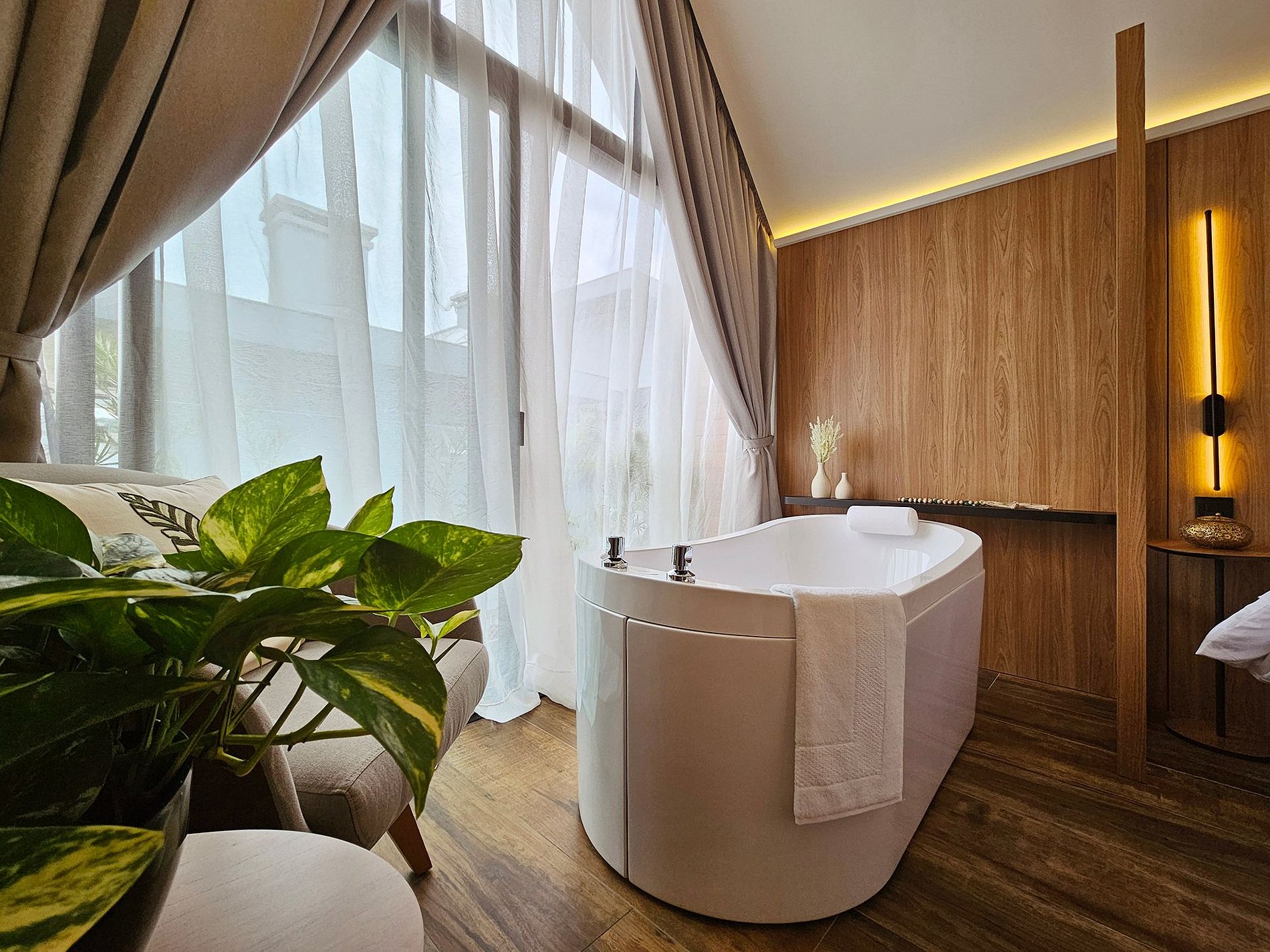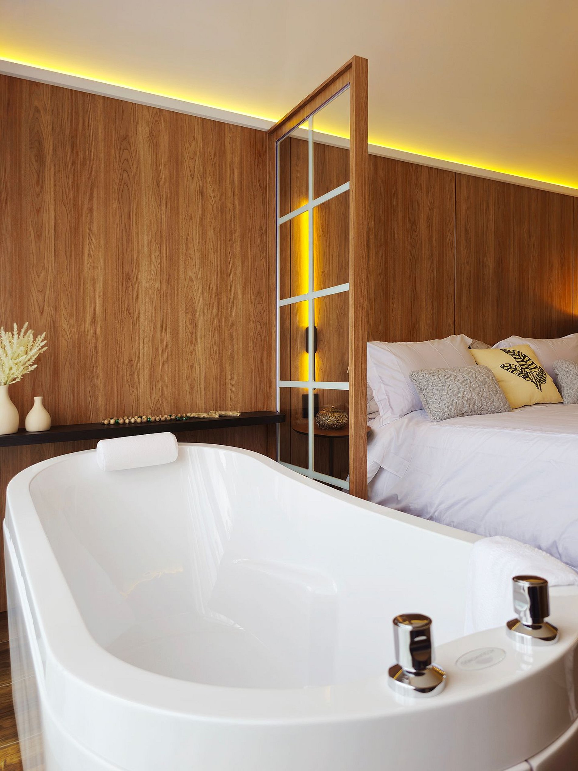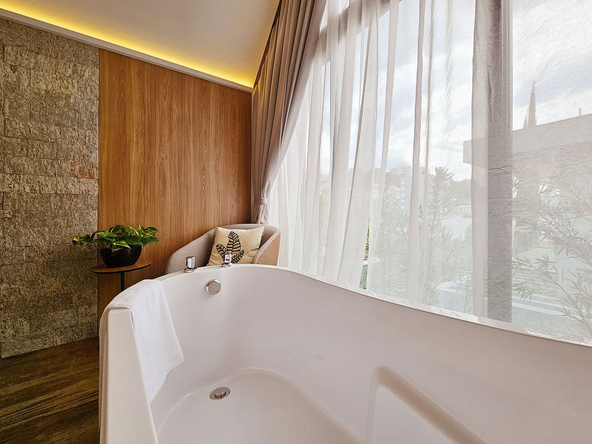 Na banheira de imersão, feche os olhos, respire fundo e permita que a água morna acalme sua mente e tire a tensão do seu corpo, transportando-o para um estado de total relaxamento.