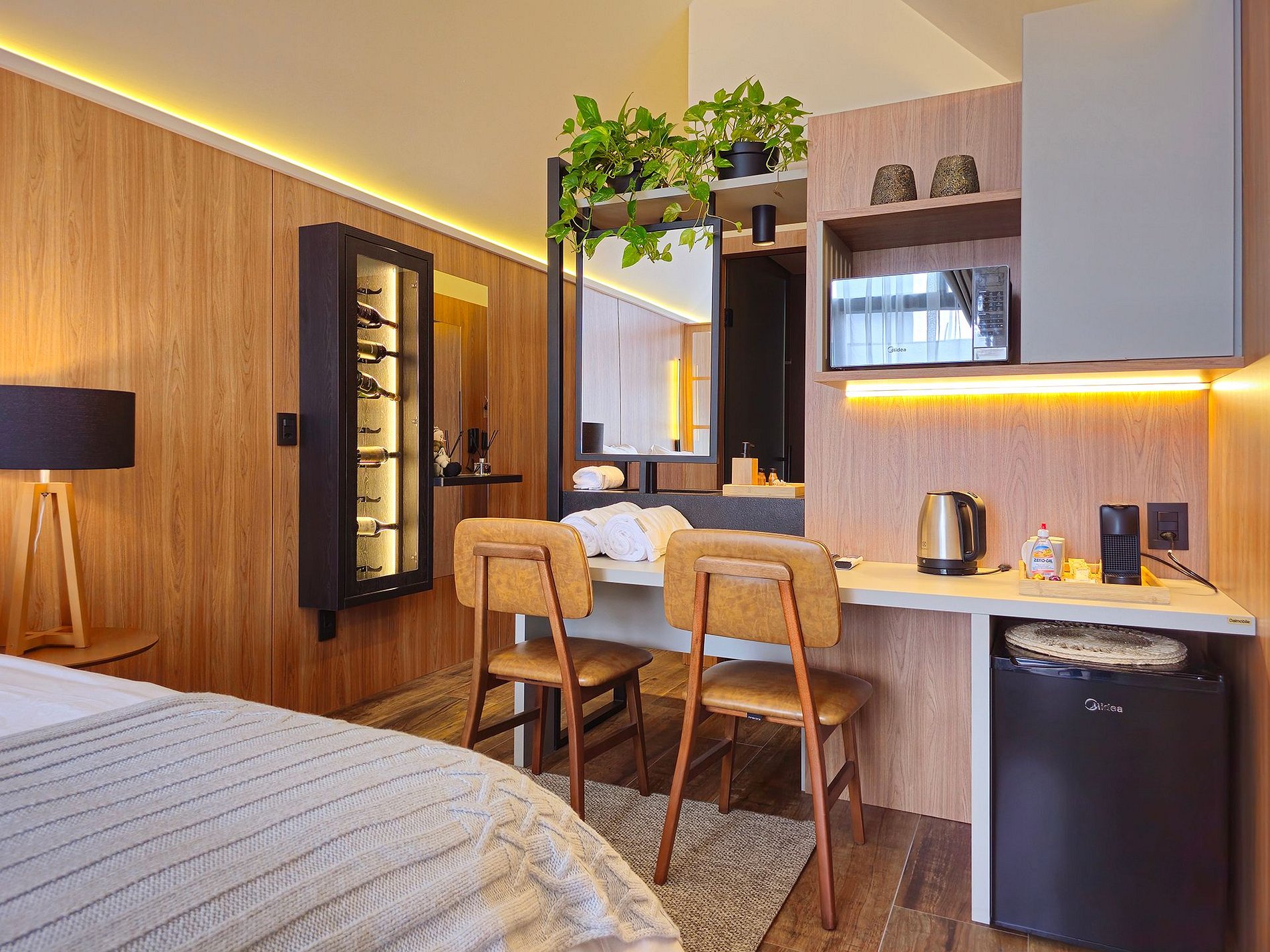 - Estacionamento Privativo - Wifi de Alta Velocidade - Amenities - Cápsulas Nespresso (04 unidades) - Seleção de Chás - Água com Gás (02 unidades) - Água sem Gás (02 unidades)