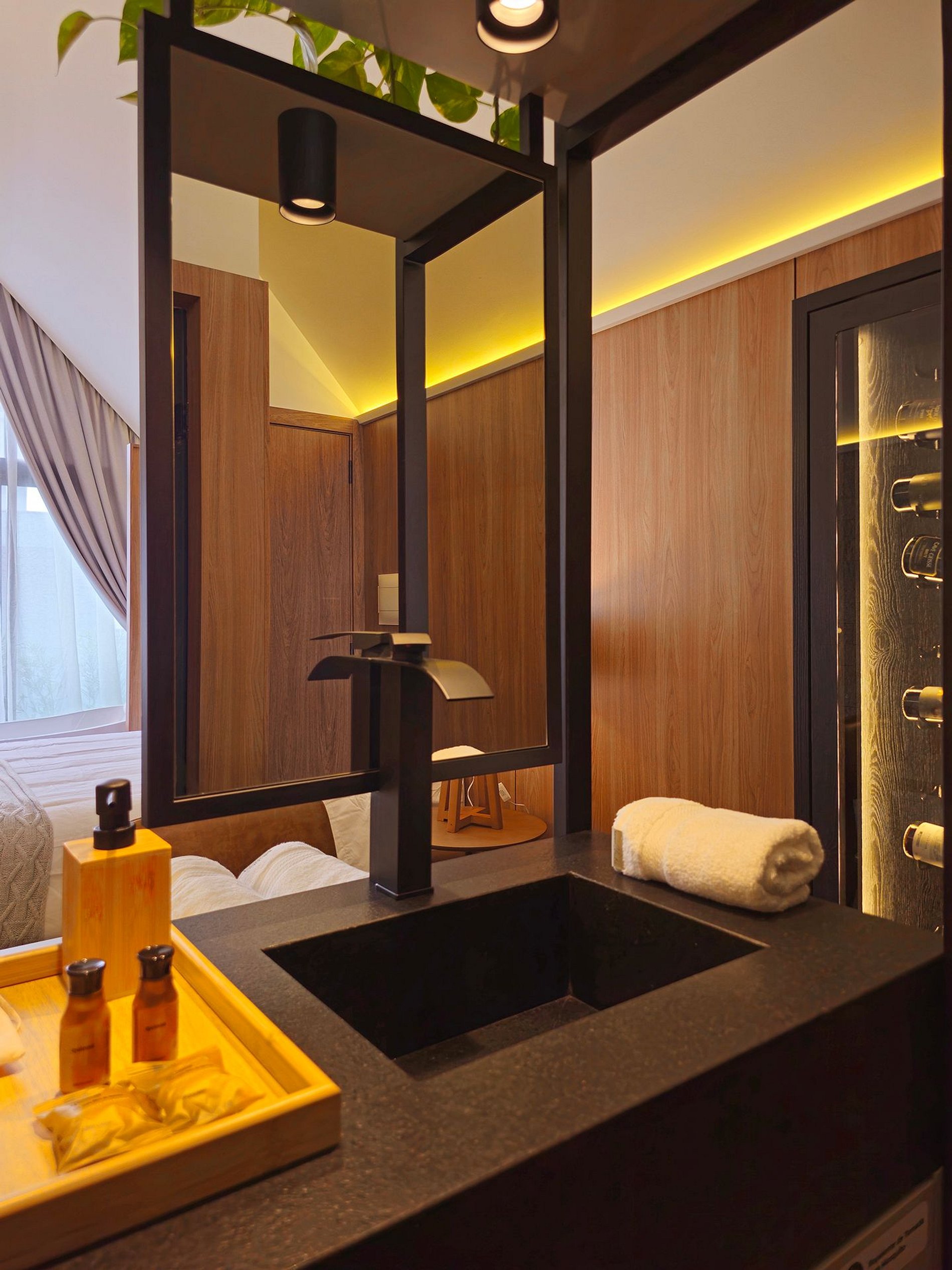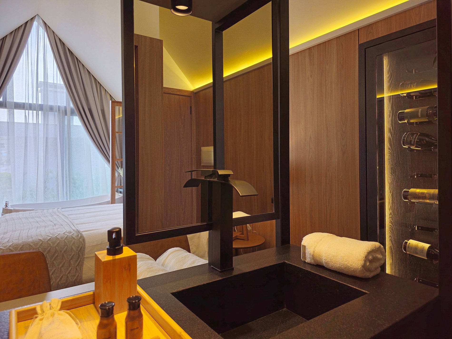 Para os amantes de vinho, uma surpresa aguarda na nossa adega privativa, onde uma seleção cuidadosamente curada de vinhos finos e espumantes está disponível para complementar a sua estadia.