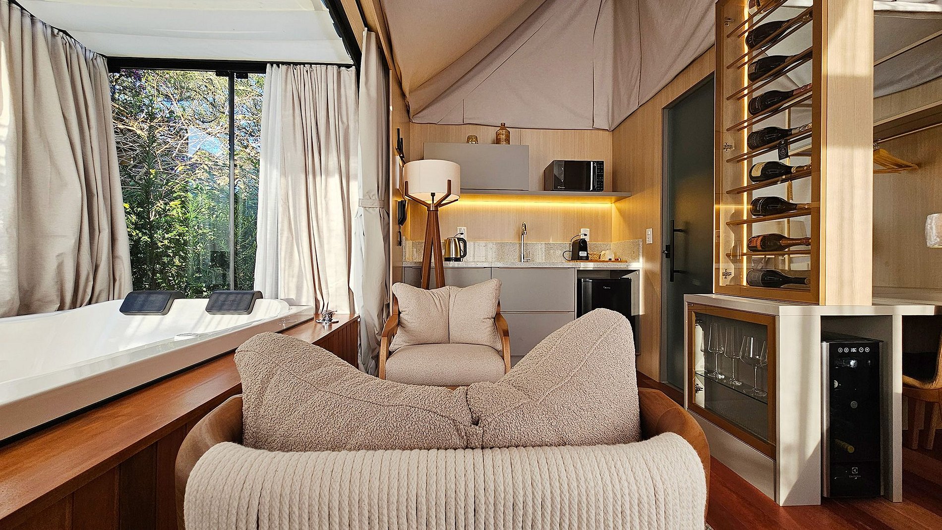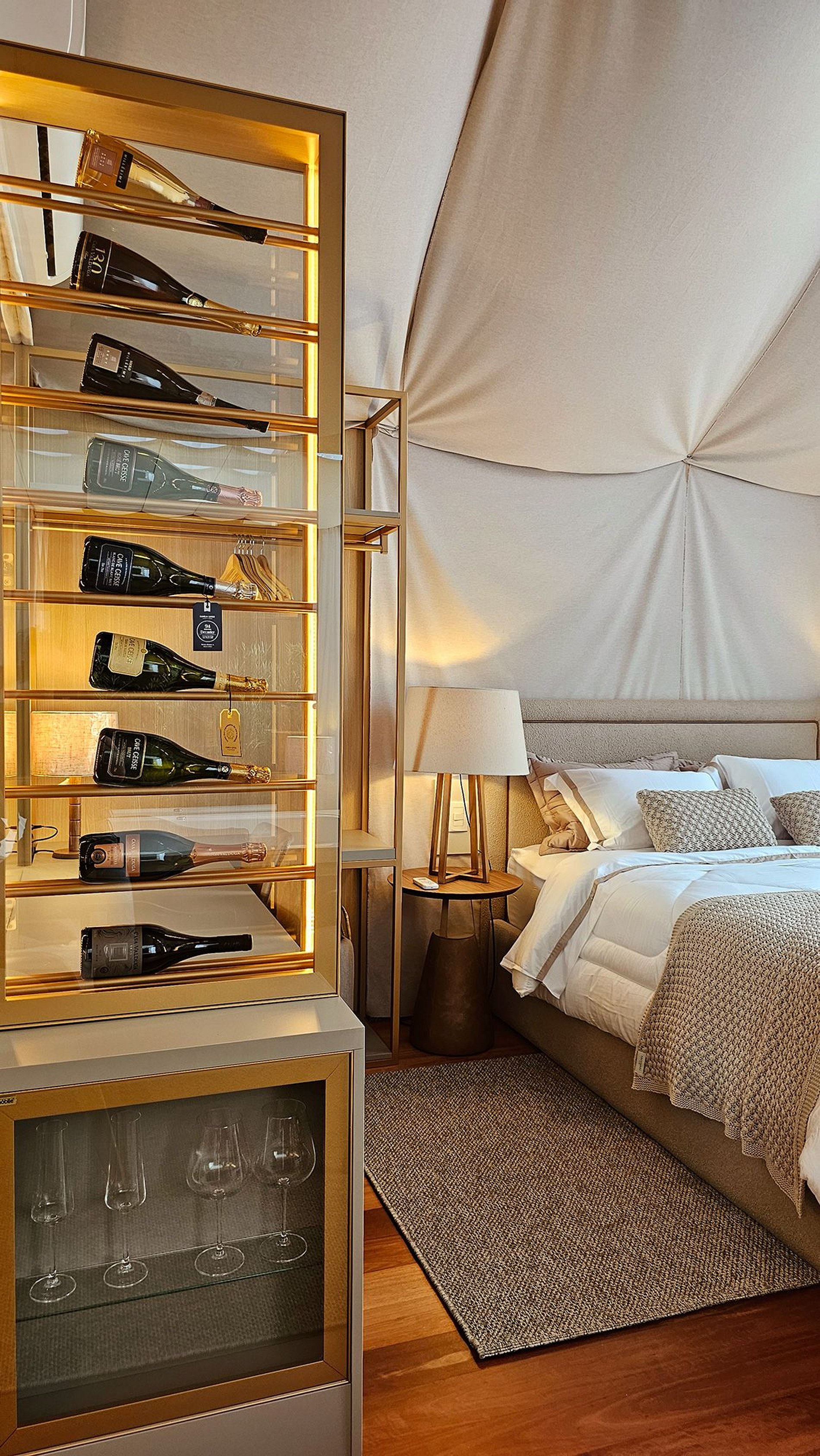 Para os apreciadores de vinho, uma surpresa aguarda dentro da cabana, uma adega interna privativa, cuidadosamente abastecida com uma seleção de vinhos finos. Desfrute de uma taça ao lado da pessoa que você ama, criando momentos memoráveis.