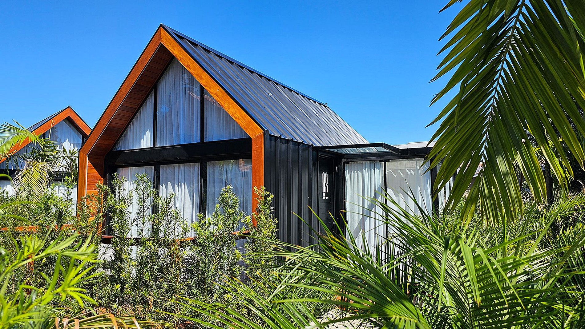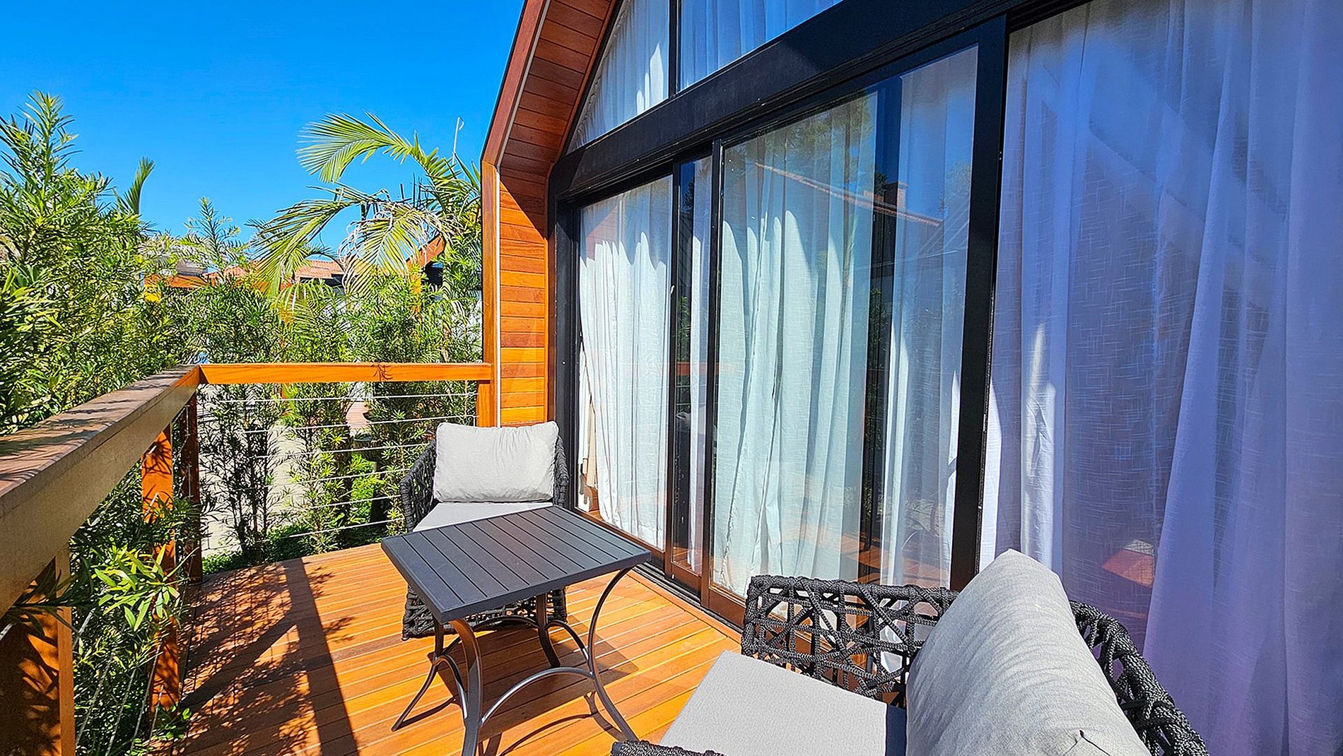 A cabana Siena, é um verdadeiro refúgio que une conforto. Seu interior, revestido em tecido de linho, traz o charme das tendas do deserto, criando uma atmosfera exclusiva. As amplas janelas permitem que a luz natural inunde o espaço, enquanto a hidromassagem com cromoterapia transforma cada momento em uma experiência relaxante. O teto de vidro proporciona uma vista deslumbrante do céu.